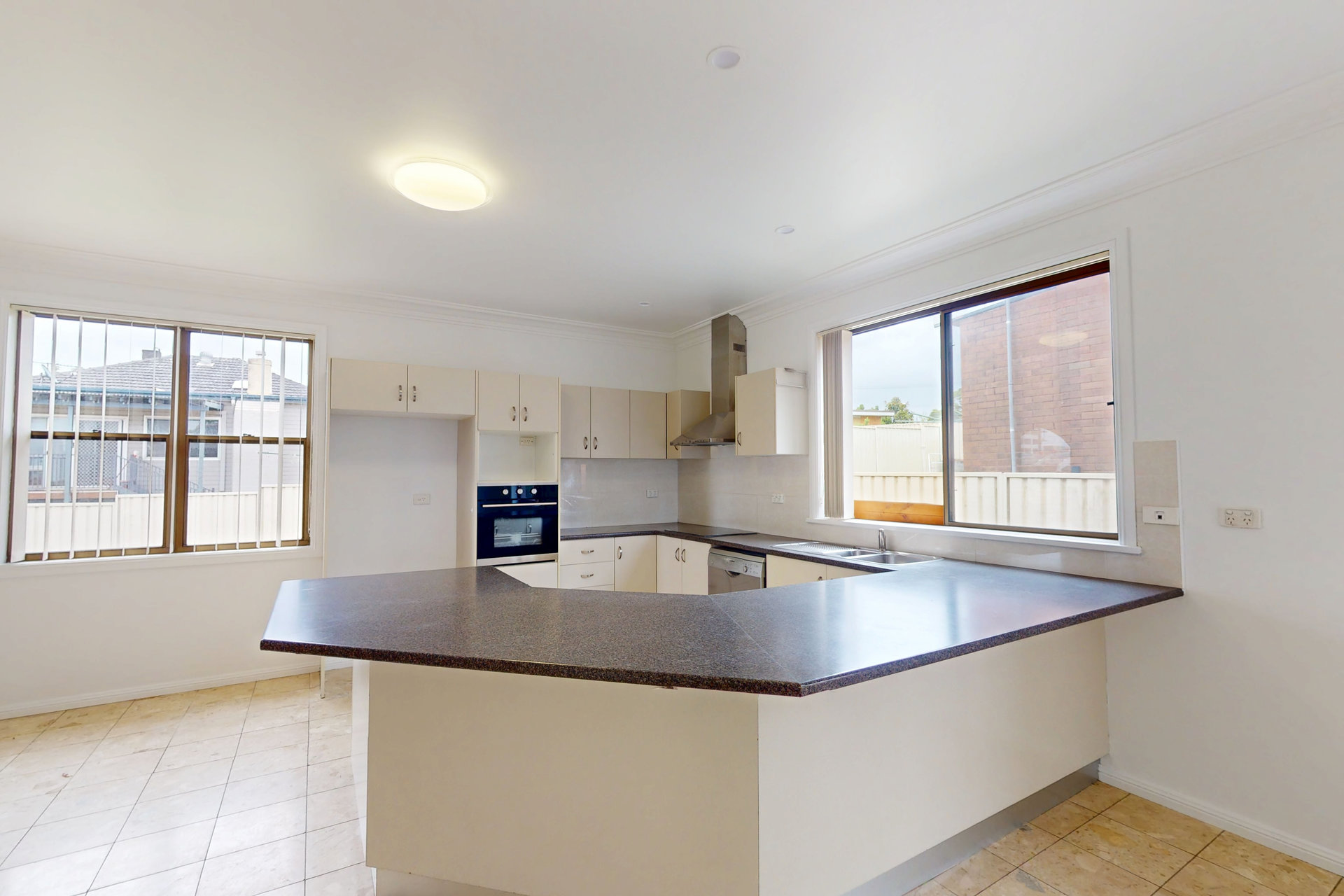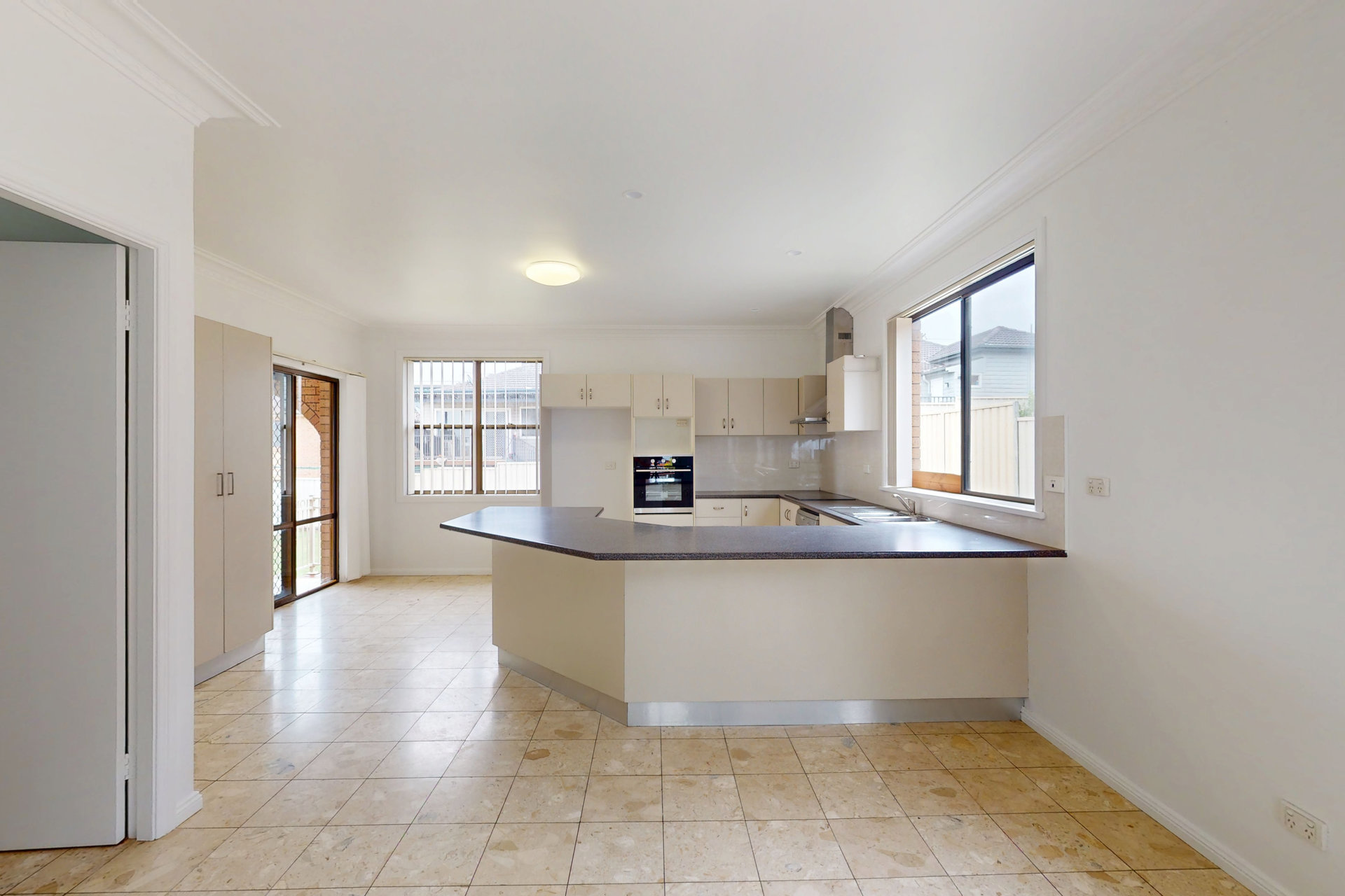 – Upstairs boasts an open-plan kitchen, dining, and lounge area