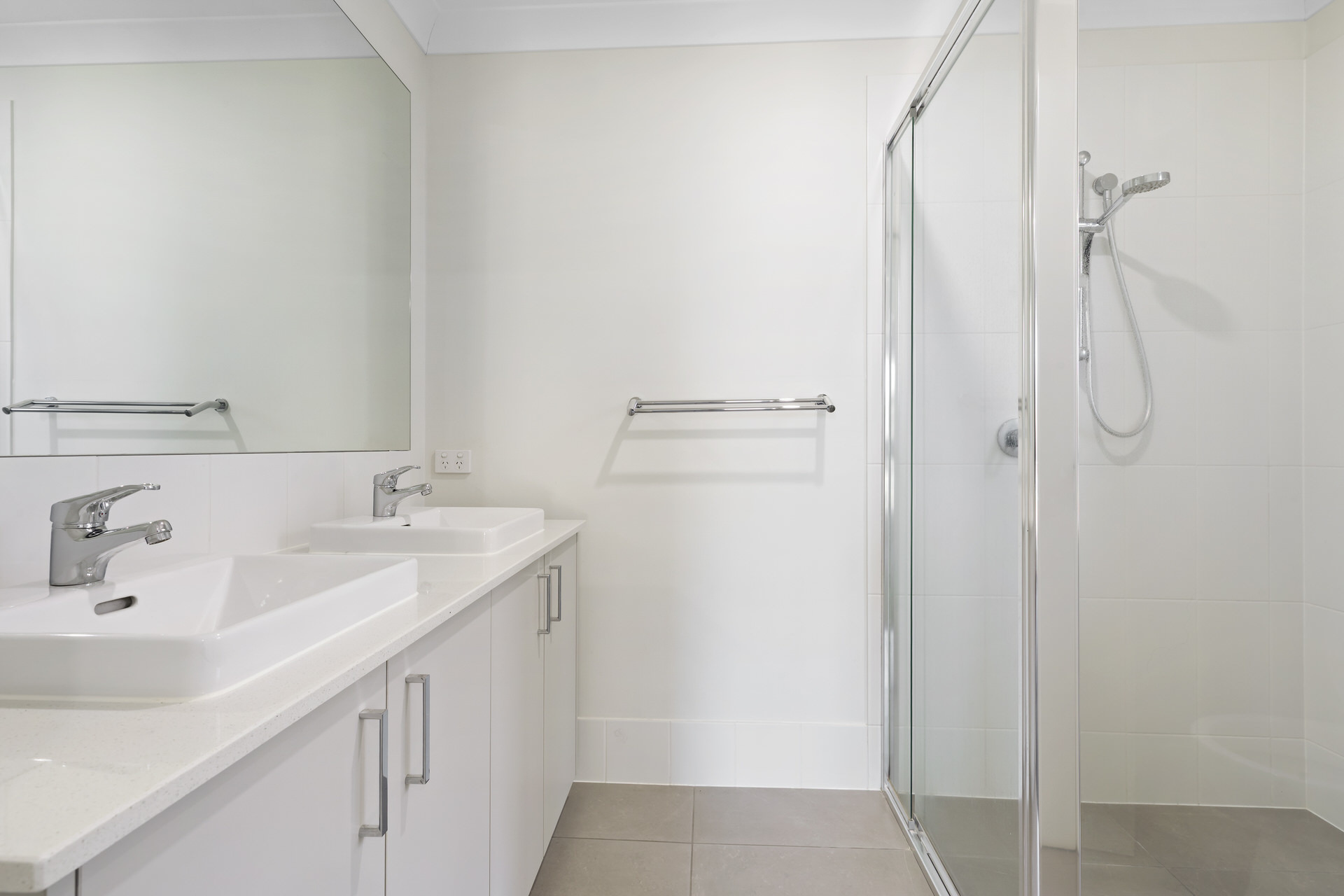 – The main bathroom includes a shower and vanity, with a separate toilet