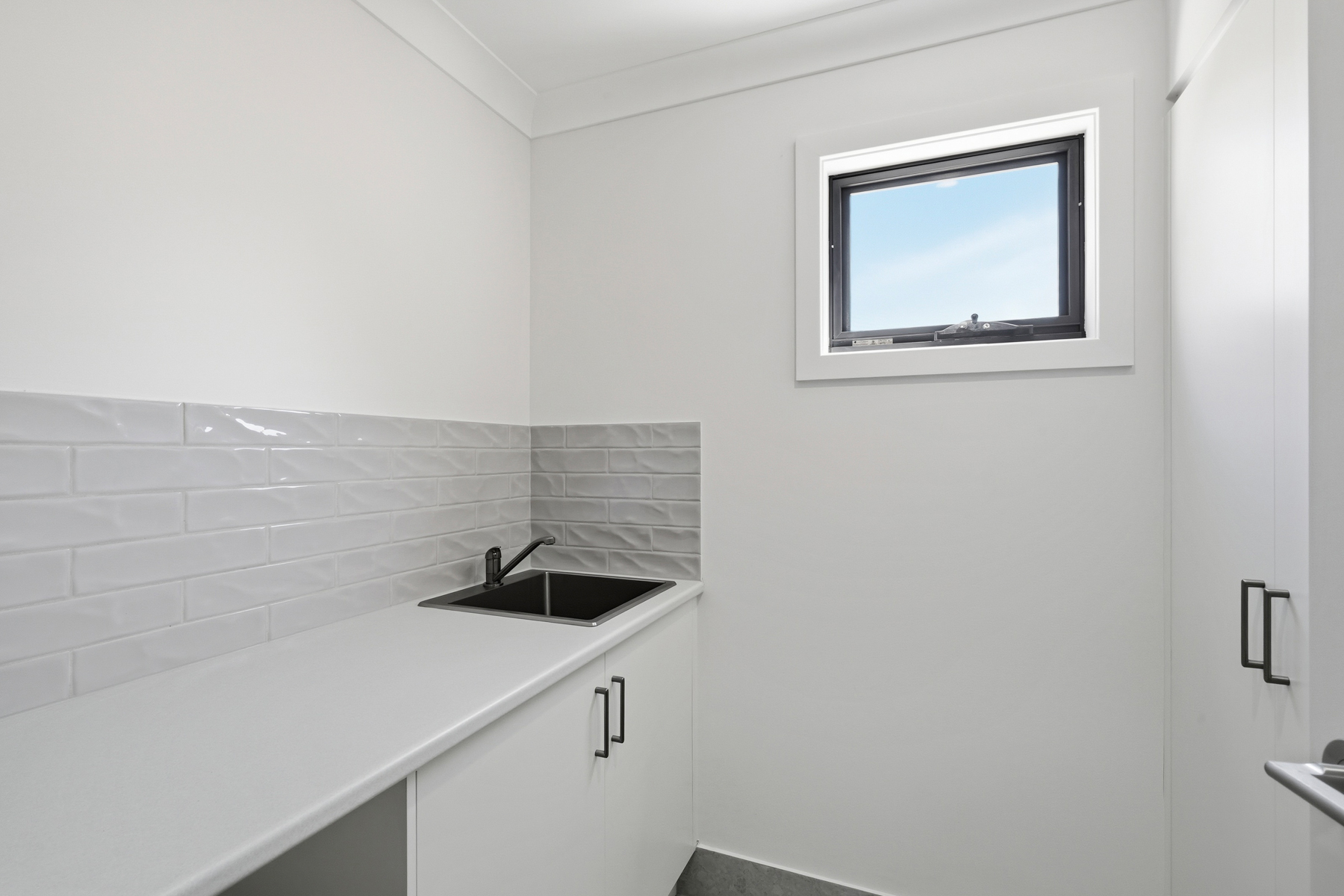 This brand new three-bedroom house is located at the front right of three houses.