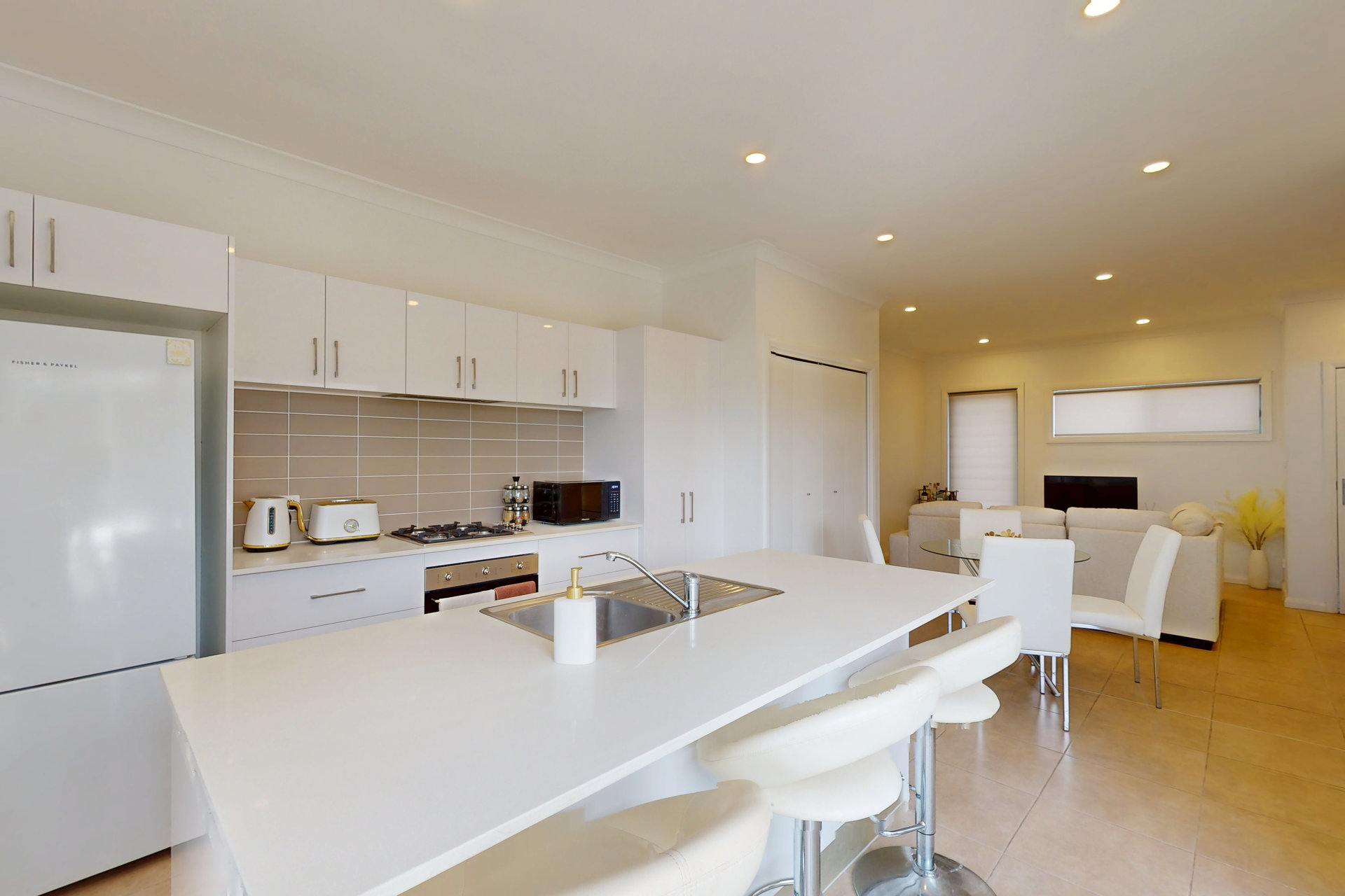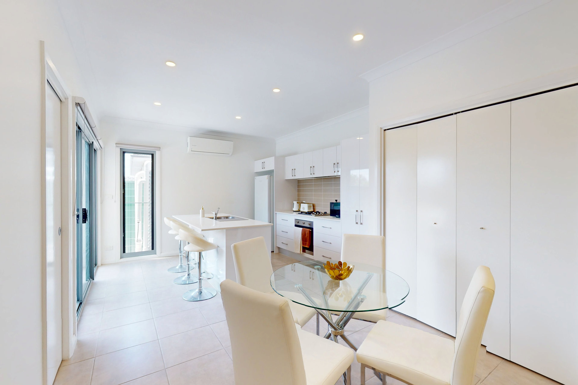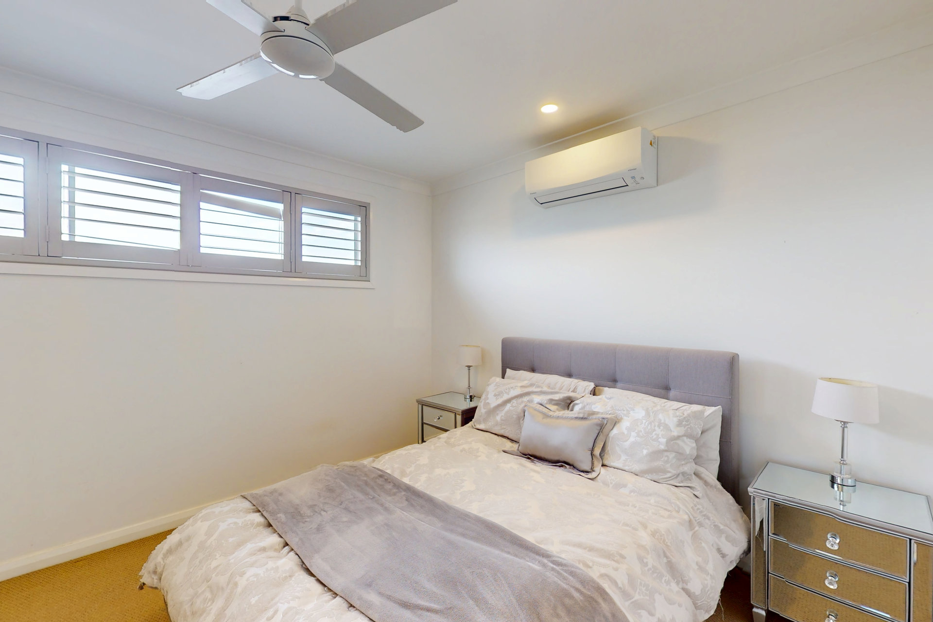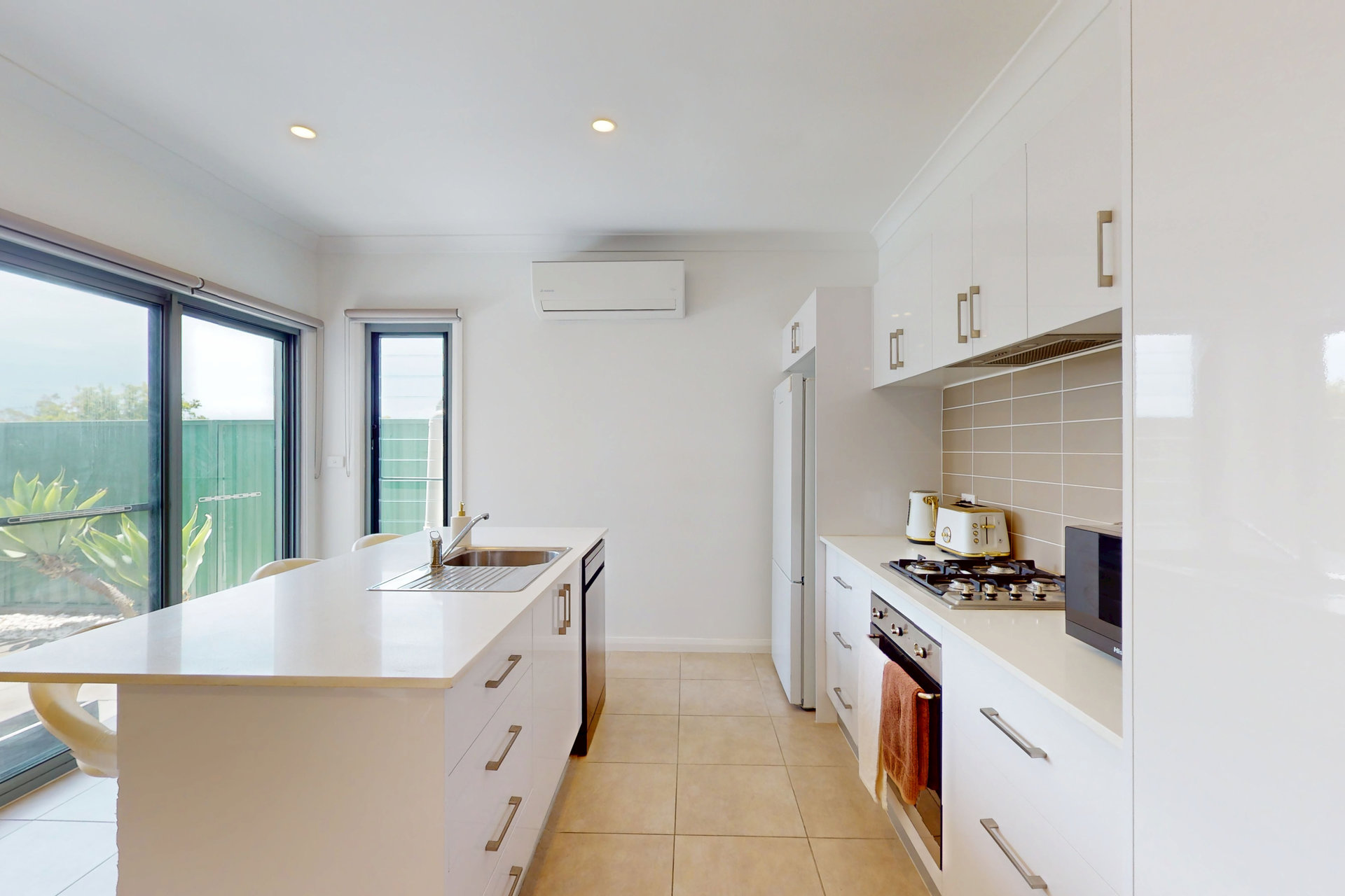 The home features air conditioning throughout and offers a flexible second living area upstairs, ideal for a study, retreat, or additional lounge space. The contemporary kitchen flows effortlessly to the generous, fully fenced courtyard – an inviting setting for outdoor dining or relaxed weekends at home.
