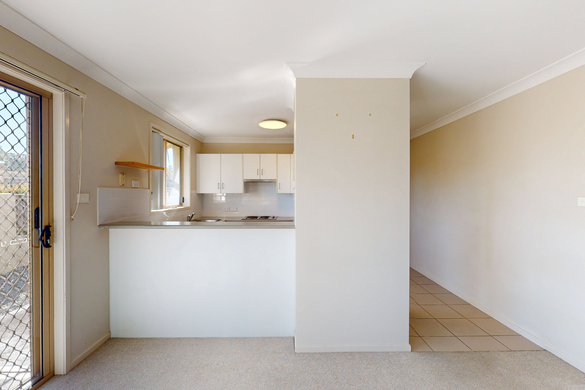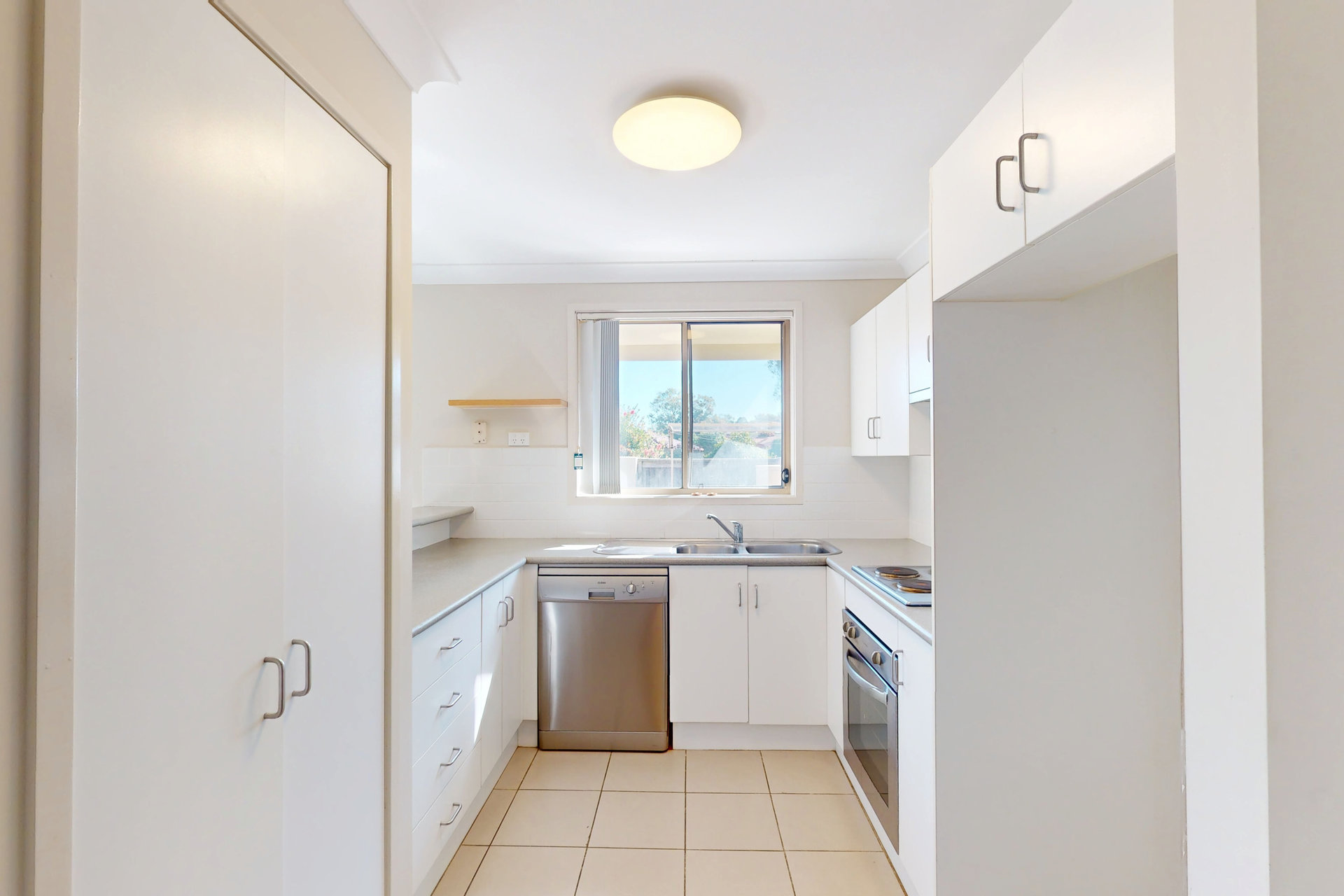– The kitchen offers electric cook-top, oven and dishwasher