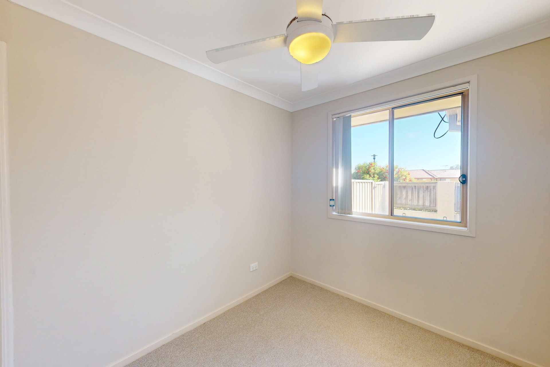 – Second bedroom with built-in wardrobe and ceiling fan
