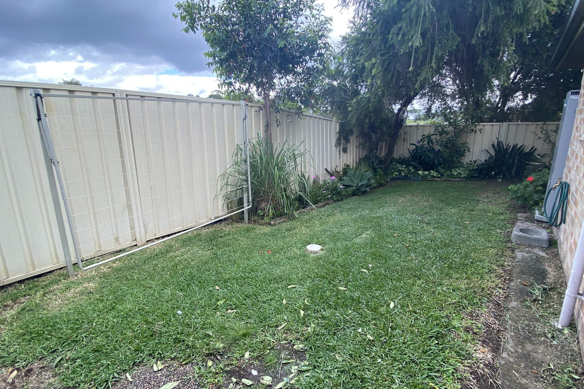 – Low maintenance, grassed courtyard with garden shed