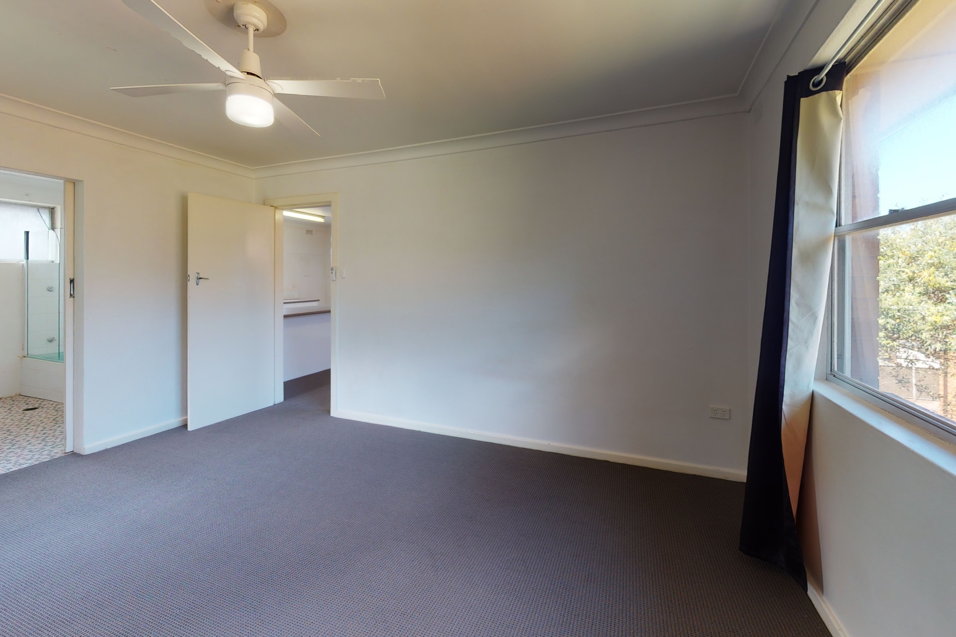 – Bedroom with ensuite-style bathroom/ceiling fan