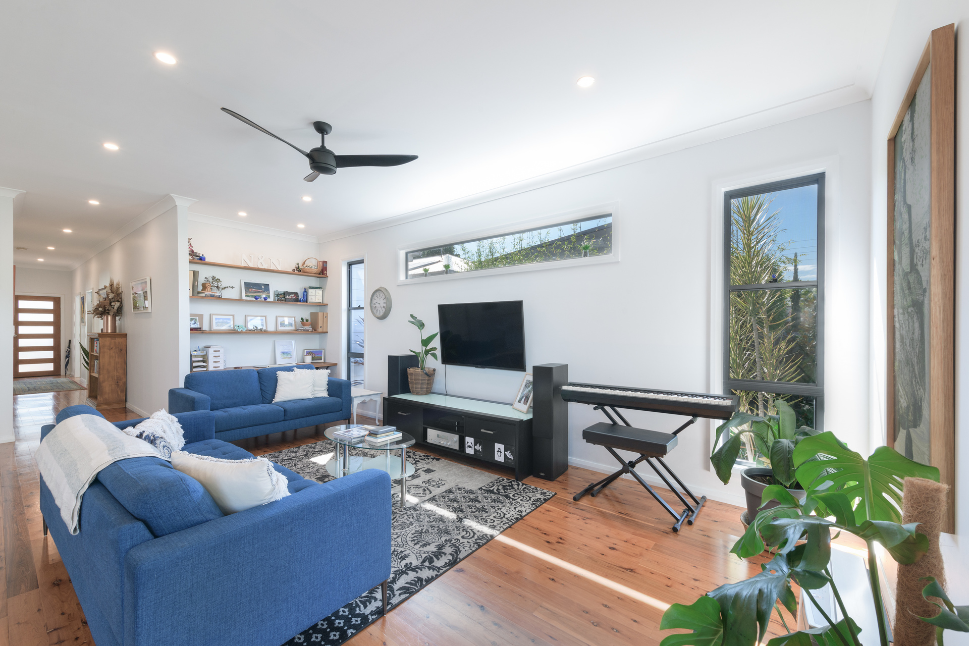 This three-bedroom home is located one kilometre from the Newcastle City Farmers Markets and 1.5 kilometres from Waratah Shopping Village and the dining precinct on Beaumont Street